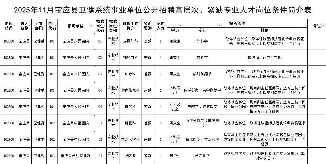 (四)符合《2025年11月宝应县卫健系统事业单位公开招聘高层次、紧缺专业人才岗位条件简介表》(以下简称《岗位简介表》,附后)中各岗位所规定的具体资格条件。